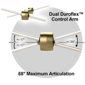 Wahacze są wyposażone w tuleje Duroflex™. Jest to jedyny dostępny na rynku wulkanizowany elastomer, w formie samocentrującego przegubu. Dodatkowo wzmocniony jest włóknem DuPont™ Kevlar® dzięki czemu zapewnia niesamowitą trwałość przy większej niewspółosiowości w wahaczach. Tuleje charakteryzują się najlepszym tłumieniem drgań niż cokolwiek innego dostępnego na rynku.